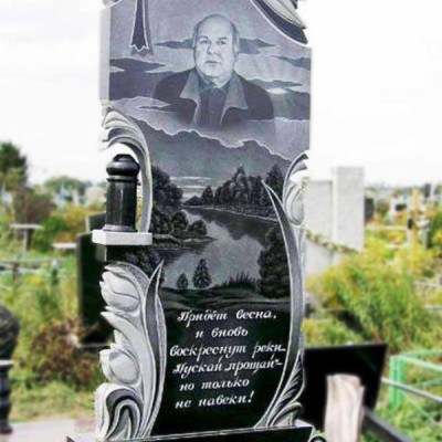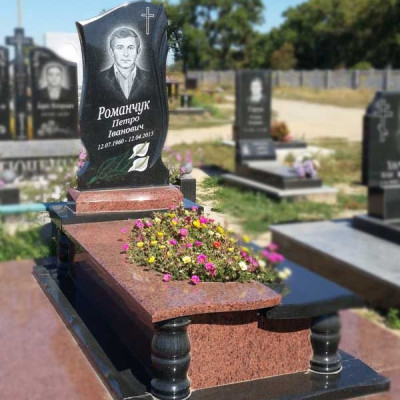Красивый, Престижный фигурный памятник из элитного черного гранита с двойным портретом.