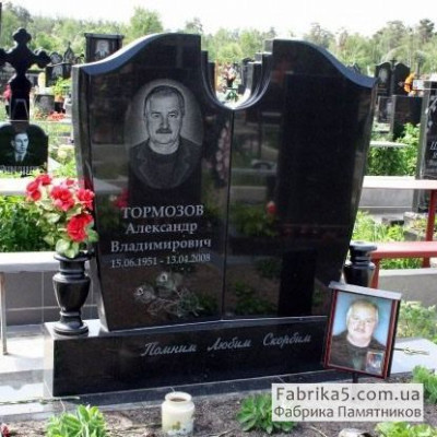 Необычный одинарный женский памятник овальной формы с фигурным надгробием из красного гранита со скамейкой.