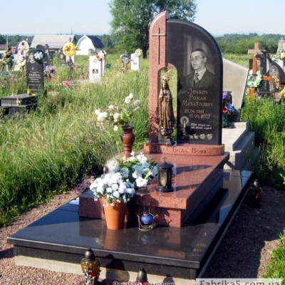 Стандартный двойной памятник с крестом из черного гранита. Модель №23-042 состоит из двух стандартных плит и прямого креста.