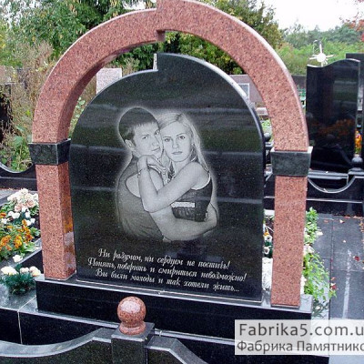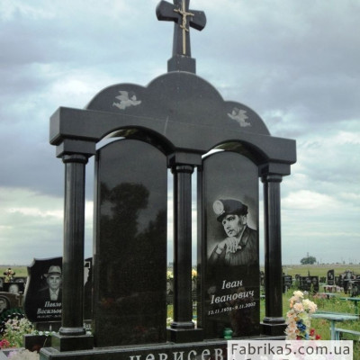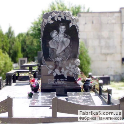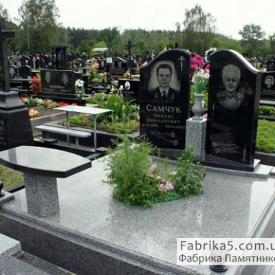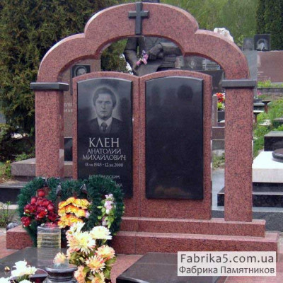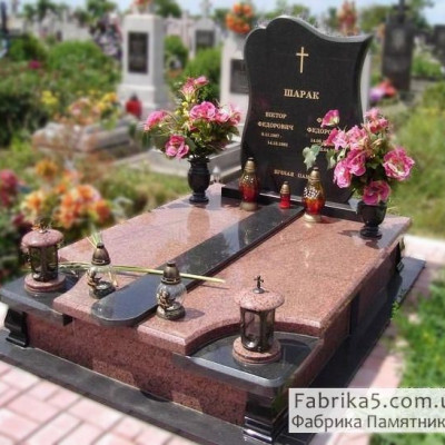 Двойной памятник с каскадным надгробием из плит красного и черного гранита. Модель №24-024 имеет просторный вид, каскад плит визуально увеличивает надгробие.