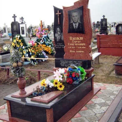 Красивый Двойной памятник из зеленого гранита с закрытым надгробием. Модель №24-045 выполнена в западном стиле.