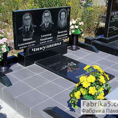 Элитный тройной памятник в «западном» стиле из бордового гранита, с общим надгробием и 3мя надгробными плитами. Два крайних места свободны.