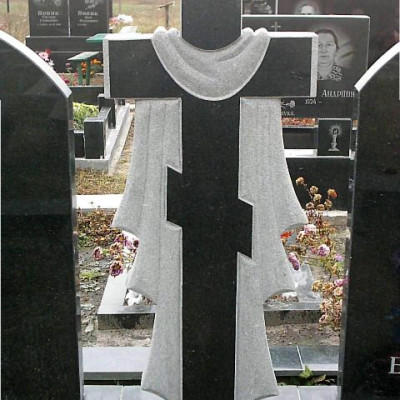Утонченный мемориальный комплекс из цветного и черного гранита.