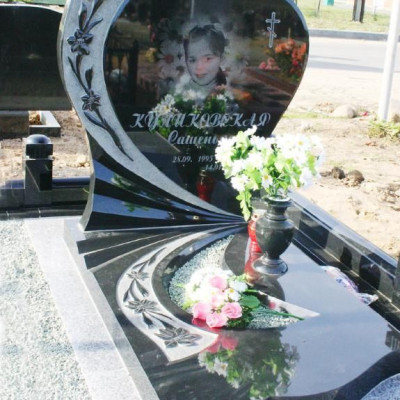 Стандартный крест из гранита с полотенцем, комплектуется подставкой «баян» для гравировки портрета и надписей.