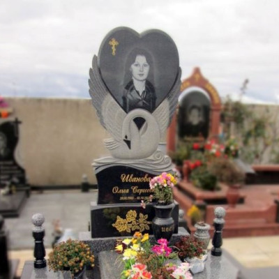 Эксклюзивный гранитный памятник с деревом на двоих с гравировкой образа скорбящей на ветвях. Модель 71-014 авторская работа и относится к группе скульптура.