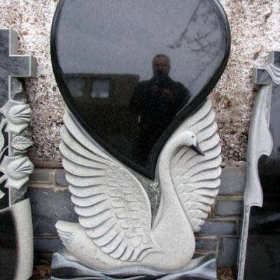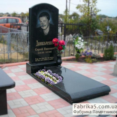 Элитная фигурная ограда из красного и черного гранита. Фигурные подвесные цоколя объеденные круглыми столбиками.