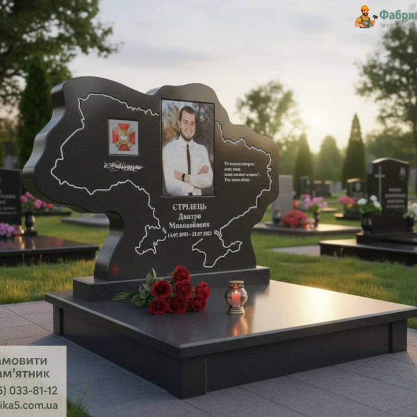 Памятник для военного в виде карты Украины Модель A-020 с цветным портретом