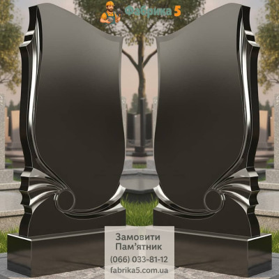 Ексклюзивний пам'ятник із чорного та сірого граніту. Модель №14-032 складається з фігурної пам'ятки та гранітного цоколя 220*220см.