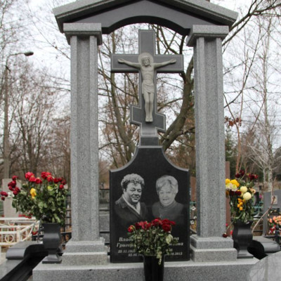 Вертикальний пам'ятник з троянди на двох людей. Модель №22-047 із чорного граніту.