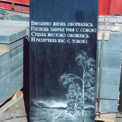 Ексклюзивний комплекс із труною з граніту. Основний елемент це надгробок у формі труни з граніту, який важить на ланцюгах (За мотивами - Кришталева Труна). Авторський проект: О.Зінчук