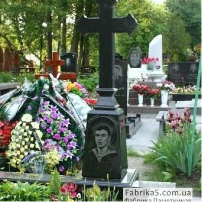 Подвійний гранітний цоколь із хвилеподібними перемичками із червоного граніту. Дана модель може виготовлятися для подвійних та одинарних поховань