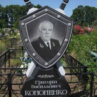 Гранітний паркан середньої висоти для сімейних та комплексних поховань. виготовляється і чорних стовпів пікоподібної форми та фігурних цоколів із червоного граніту.